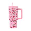 Estia Straw Tumbler XL Save the Aegean 01-32081 Ανακυκλώσιμο Handled Tumbler Θερμός Ανοξείδωτο BPA Free 900ml Cherry Rose με Καλαμάκι και Λαβή