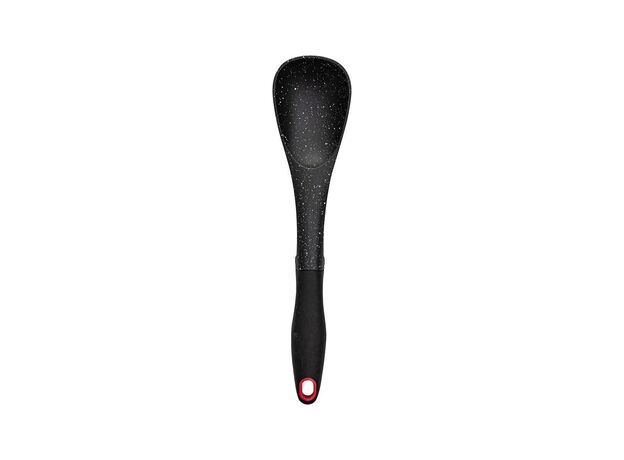 Αντικολλητική κουτάλα τύπου ραγού με μαρμάρινη επίστρωση ιδανική για κεραμικά και αντικολλητικά σκεύη. Με εργονομική λαβή σιλικόνης και θηλιά για να κρεμιέται. Αντέχει σε υψηλές θερμοκρασίες έως 220°C. Κατάλληλη για πλύσιμο στο πλυντήριο πιάτων.