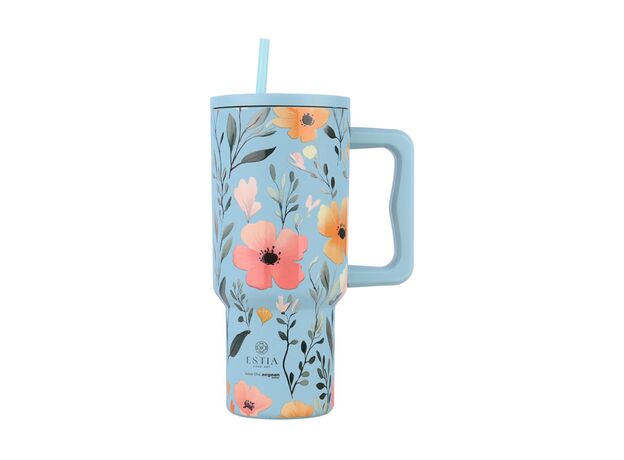 Estia Straw Tumbler XL Save the Aegean 01-32036 Ανακυκλώσιμο Handled Tumbler Θερμός Ανοξείδωτο BPA Free 900ml Sky Garden με Καλαμάκι και Λαβή